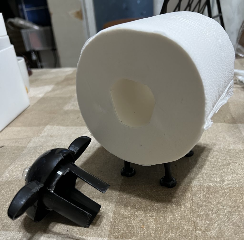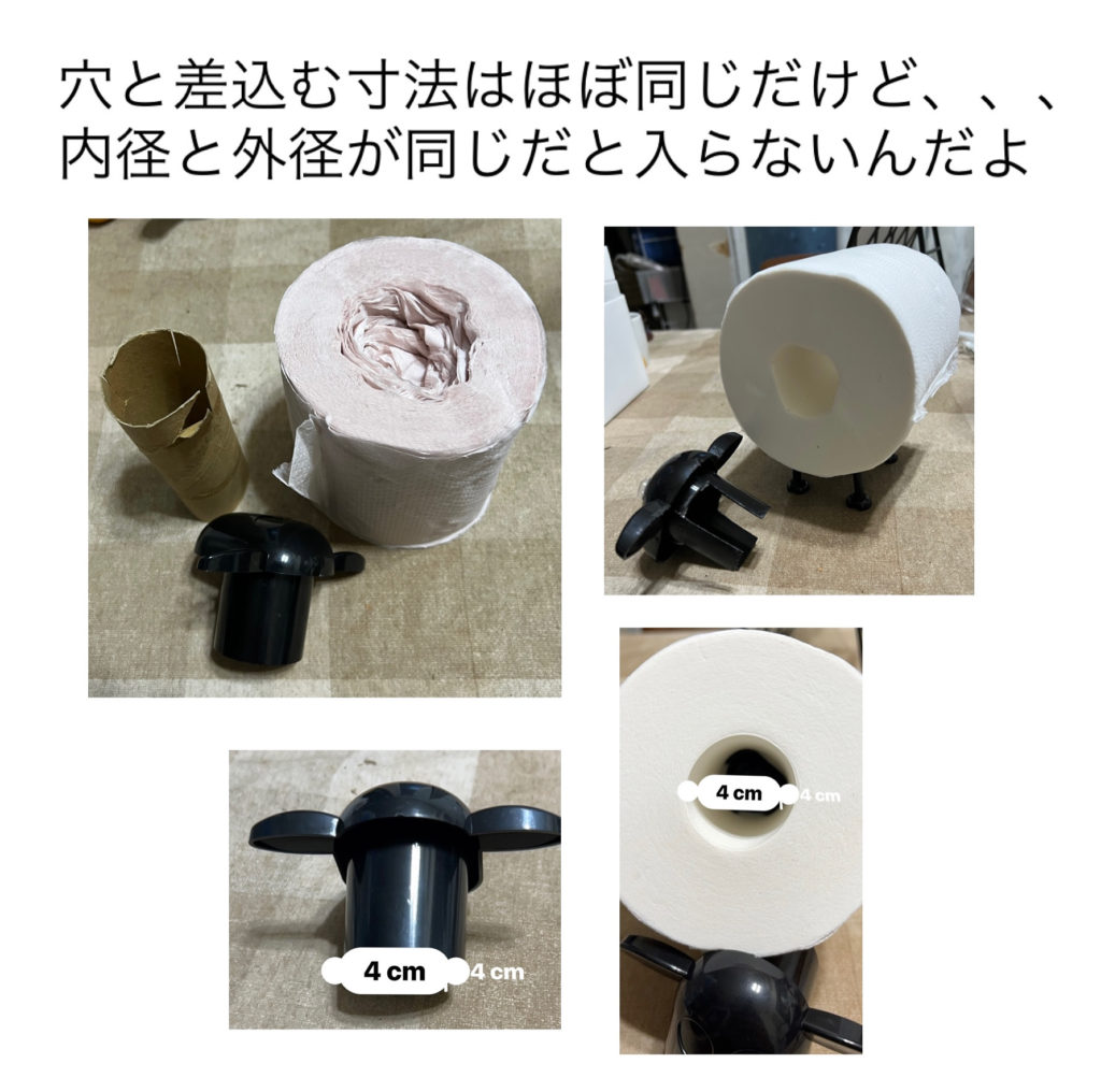 トイレットペーパー側の芯を抜けば多少は穴サイズが大きくなると思ったけど、それでも入らない???