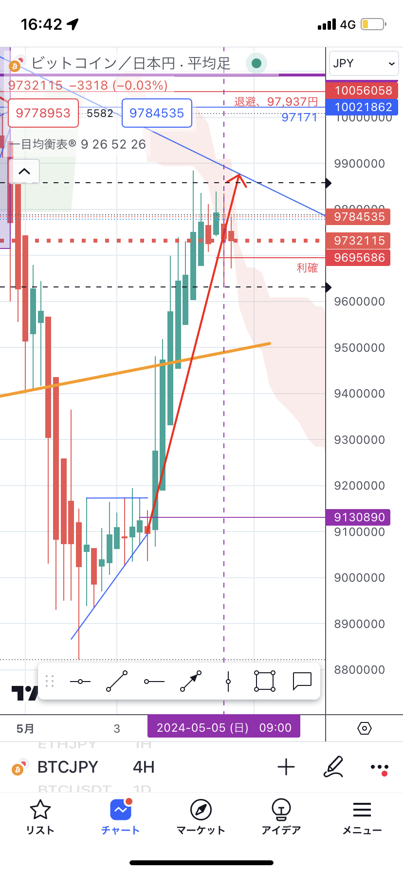 ↑尻尾を追わずに、早めに利確した時のチャート